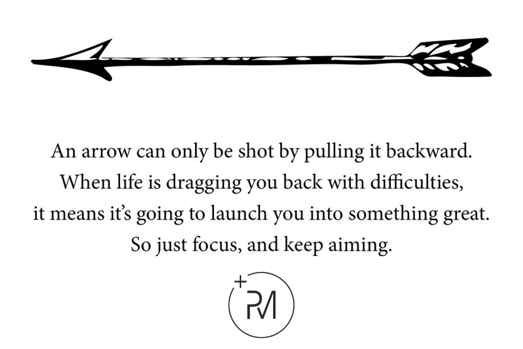 Κάθε φορά που το νιώθεις αυτό ή το βλέπεις να γίνεται, να θυμάσαι οτι για να εκτοξευθεί ένα βέλος απο το τόξο, πρέπει να το τραβήξεις προς τα πίσω, ώστε να δημιουργηθεί η κατάλληλη τάση και να ταξιδέψει πολύ μακριά σε σχέση με το που βρισκόταν.